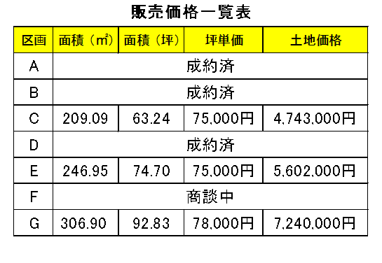 面 積:223.90㎡(67.72坪)~1,521㎡(460坪)全9区画